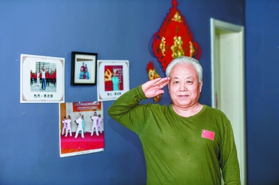退伍老兵李庆潭谈到自己参加国庆庆典活动时,激动地行了一个军礼。 |