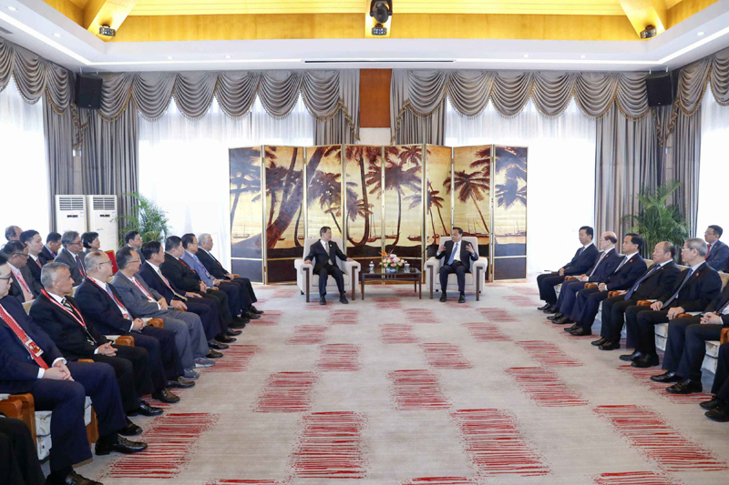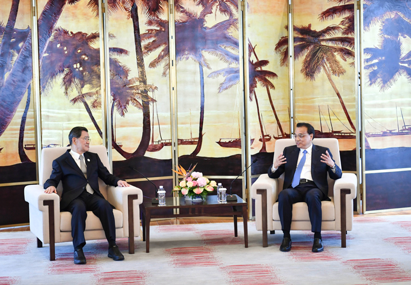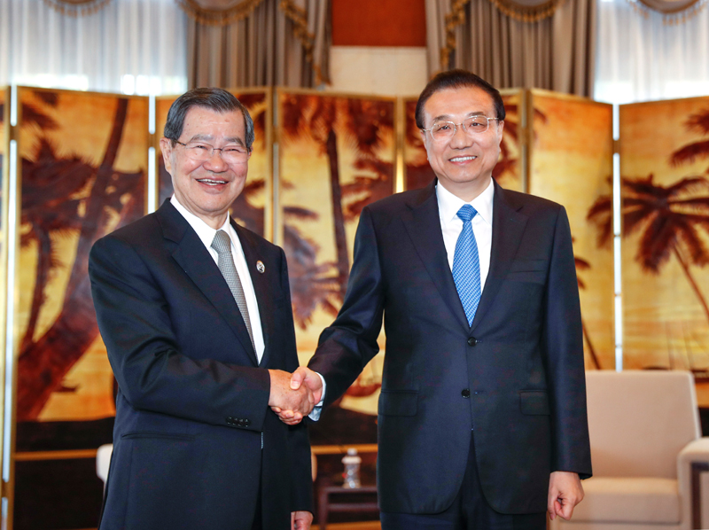 国务院总理李克强27日下午在海南博鳌会见台湾两岸共同市场基金会荣誉董事长萧万长一行。