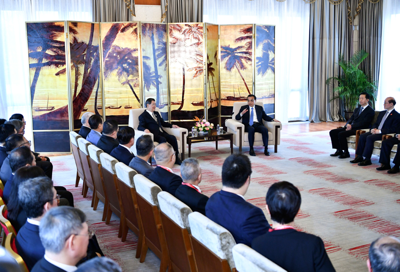 李克强表示,台商台资为大陆经济发展作出了重要贡献,欢迎台商继续来大陆投资兴业。我们原有的优惠政策会继续保持,依法保护台商台资合法权益,还将不断推出新的惠台措施,确保取得实实在在的成效。台资企业既可参照或比照适用新的外商投资法,也能享受和大陆企业一视同仁的待遇,大陆减税降费举措也会让台商同等受益。我们愿扩大从台湾进口农产品、水产品等,并提供更多便利和优惠。