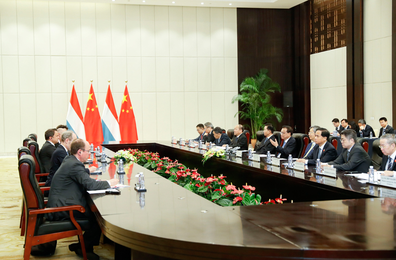 国务院总理李克强3月27日在海南博鳌会见来华出席博鳌亚洲论坛2019年年会的卢森堡首相贝泰尔。