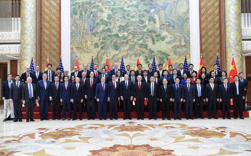 2月14-15日,中共中央政治局委员、国务院副总理、中美全面经济对话中方牵头人刘鹤与美国贸易代表莱特希泽、财政部长姆努钦在北京举行第六轮中美经贸高级别磋商。新华社记者 申宏 摄