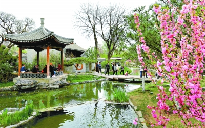 市民在三里河绿化景观休闲(4月6日摄)。新华社发