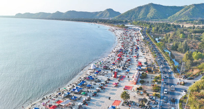 广东汕尾陆丰市,金厢银滩游人如织。 |