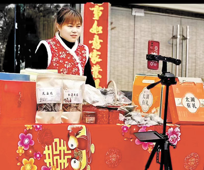 安徽安庆太湖县,工作人员在进行电商直播。 |