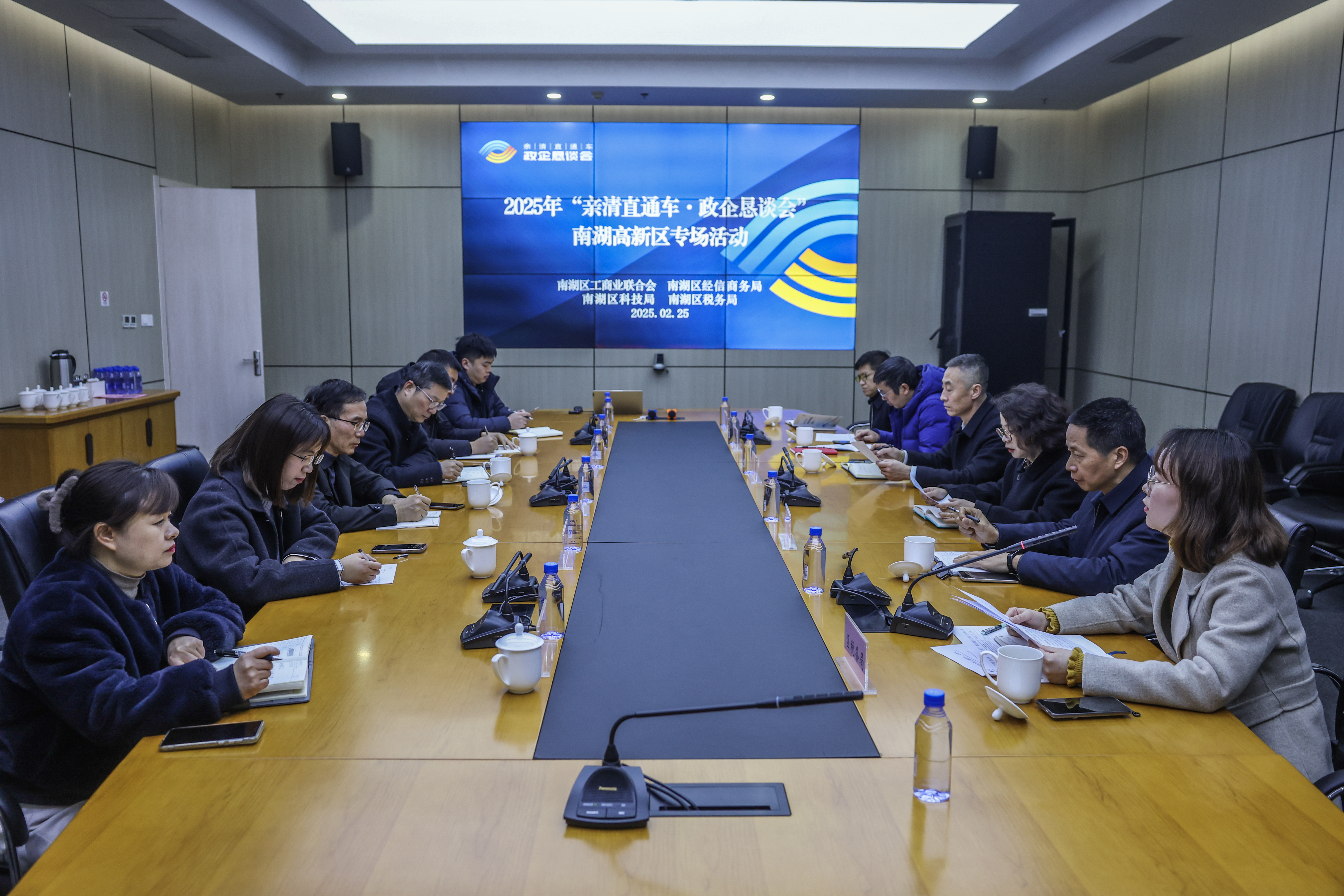 2025年2月25日,浙江省嘉兴市南湖区工商联召开“亲清直通车·政企恳谈会”,为企业排忧解难,助力民营企业稳健发展。新华社记者 徐昱 摄