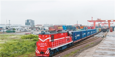 一列满载货物的海铁联运班列从铁路浙江义乌西站开出,驶向宁波舟山港。 |