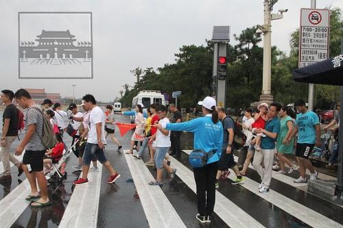 天安门地区志愿服务项目开始于2014年,4年来项目不断完善,参与志愿者越来越多,覆盖范围越来越广,服务内容越来越丰富。项目立足于天安门地区,依托爱国主义教育基地的特殊性质,于每年旅游旺季的节假日及暑期开展志愿服务活动。天安门志愿服务项目以优秀社会志愿者为骨干,为广大首都青少年搭建实践社会、服务社会的公共服务平台,大力支持中学生以志愿家庭的形式参与地区志愿服务,积极组织大学生参加志愿服务活动,并结合天安门地区独特的爱国主义教育资源,面向参与地区服务的志愿者们广泛开展爱国主义教育活动。2016年,天安门地区志愿服务项目获得第三届中国青年志愿服务项目大赛北京赛区金奖、全国大赛银奖。2017年,天安门地区志愿服务项目累计开展78天,参与志愿服务的高校、社会团体、志愿家庭以及优秀社会志愿者累计3098人次,服务总时长3.8万小时,解答游客咨询47万次,扶老助残3639人次,取得了良好的社会效果。