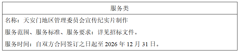 二、项目名称:天安门地区管理委员会宣传纪实片制作